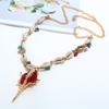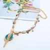 This shell chain necklace features a geometric design crafted from durable shell material, measuring approximately 21 to 50 inches in length with an elliptical chain style. Adorned with a pearl and blue sapphire accent, it adds elegance to everyday fashion accessories and holiday ensembles. Ideal for gifting, travel, or employee recognition, it supports gentle cleaning with a damp cloth.