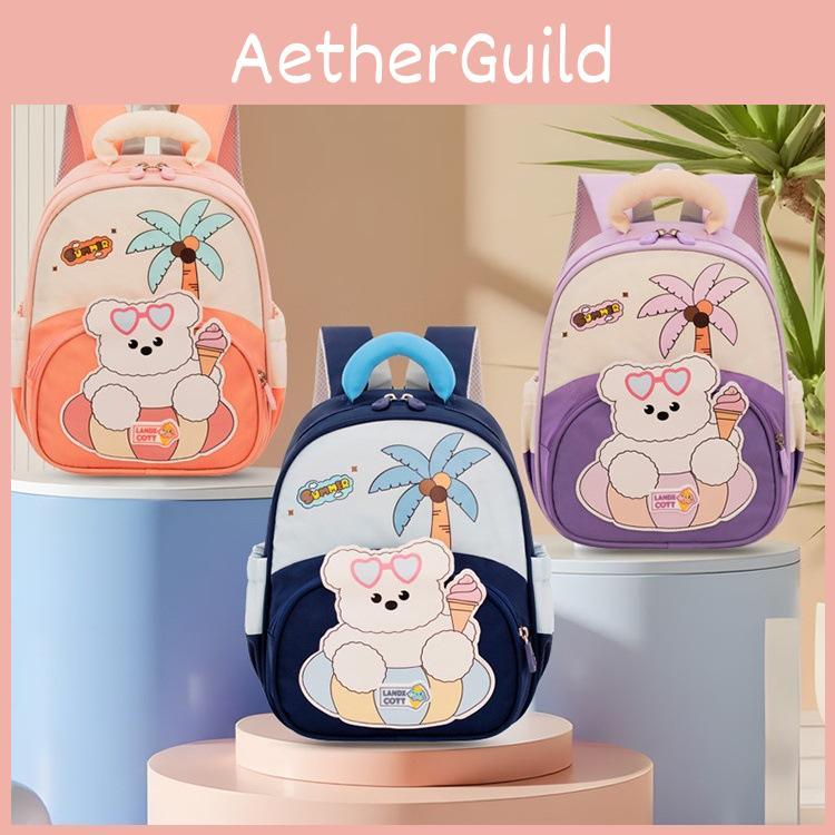 This lightweight childrens backpack features breathable oxford fabric and measures approximately deep for easy carrying. Its fun cartoon bear design appeals to kids aged 3-6, supporting school activities and outings. The backpack includes curved shoulder straps for comfort and is easy to clean with a damp cloth.