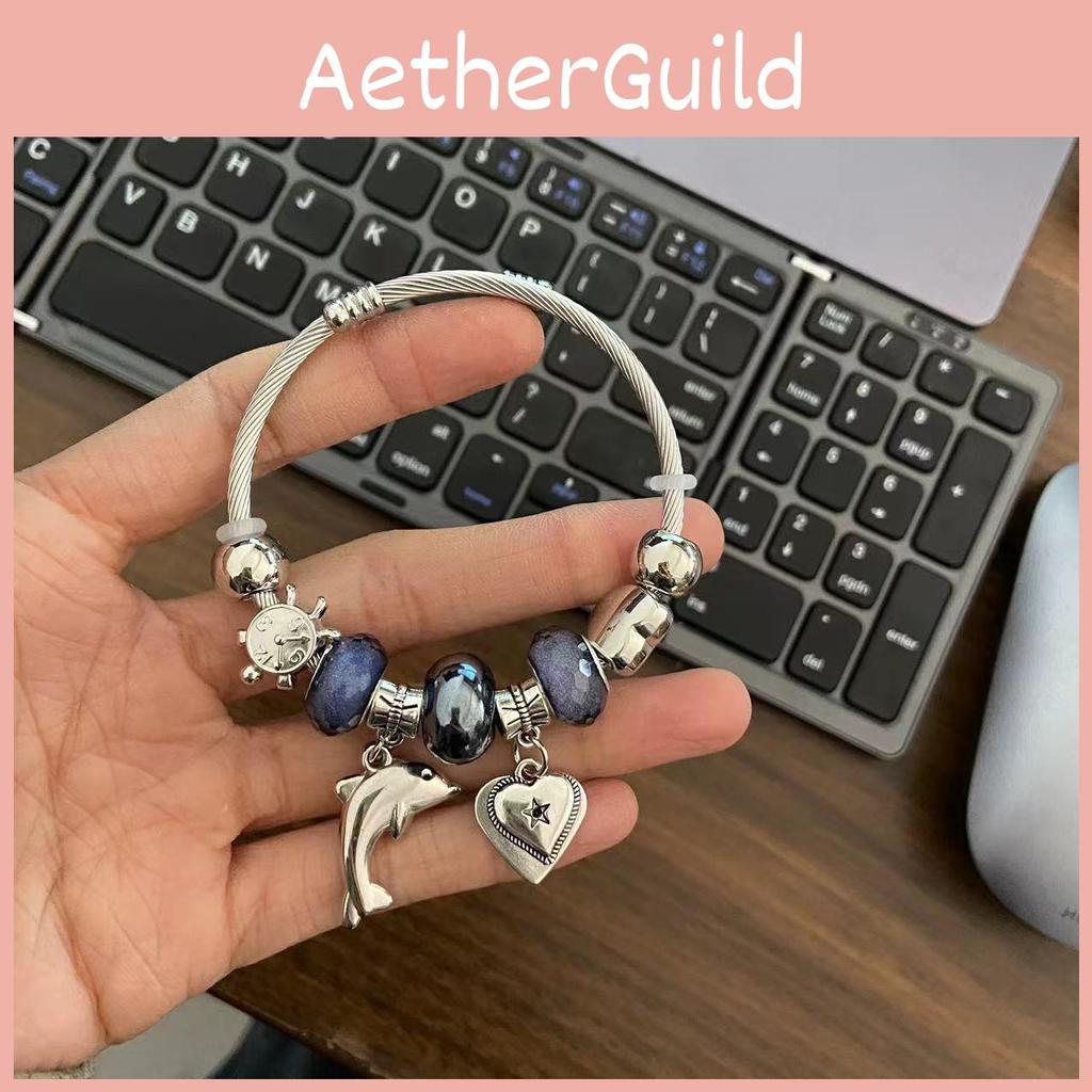 This adjustable stainless steel bracelet features a sleek dolphin and heart design, combining modern style with playful charm. Crafted with electroplating, it is available in black and white finishes. Ideal for casual or summer occasions, it adds a fresh touch to everyday outfits. Wipe clean with a soft cloth to maintain its shine.