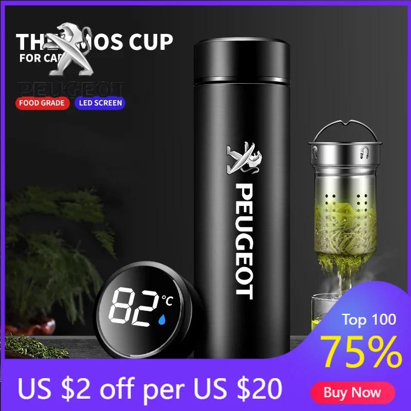 2026 Varm Bilklistermärke Bilmärke Intelligent Termosmugg Resa Sport Rostfritt Stål Vattenmugg För Peugeot 308 408 508 RCZ 208