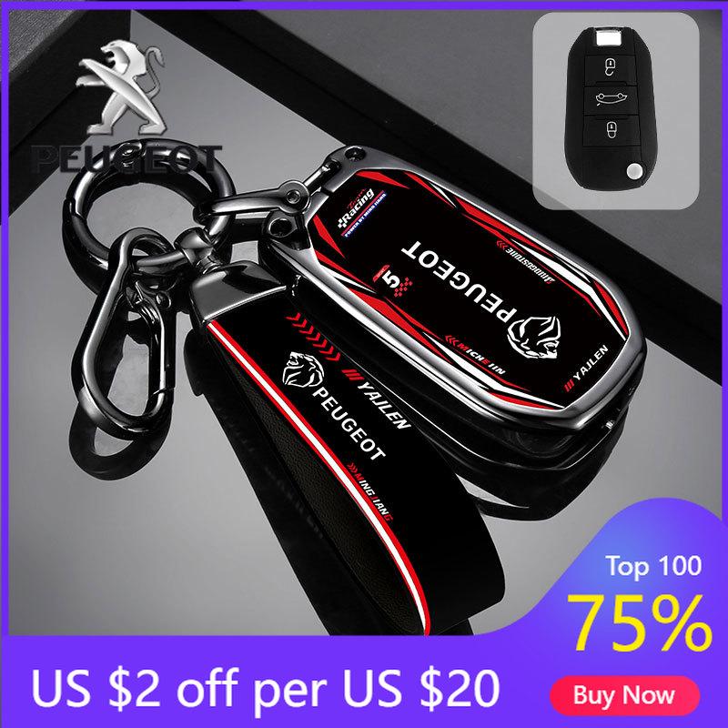 2026 Het Bilklistermärke Zinklegering Bilnyckelfodral Fullt Skydd Nyckelväska Skalhållare Nyckelring För Peugeot 208 308 408 508 2008 3008 4008 5008