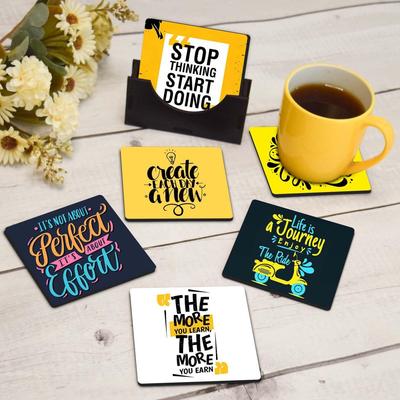 Underlägg för tekoppar, Set om 6, Vacker design med ställ för tekoppar, kaffemuggar och glas, Idealiskt för Diwalipresenter (Inspirerande citat)