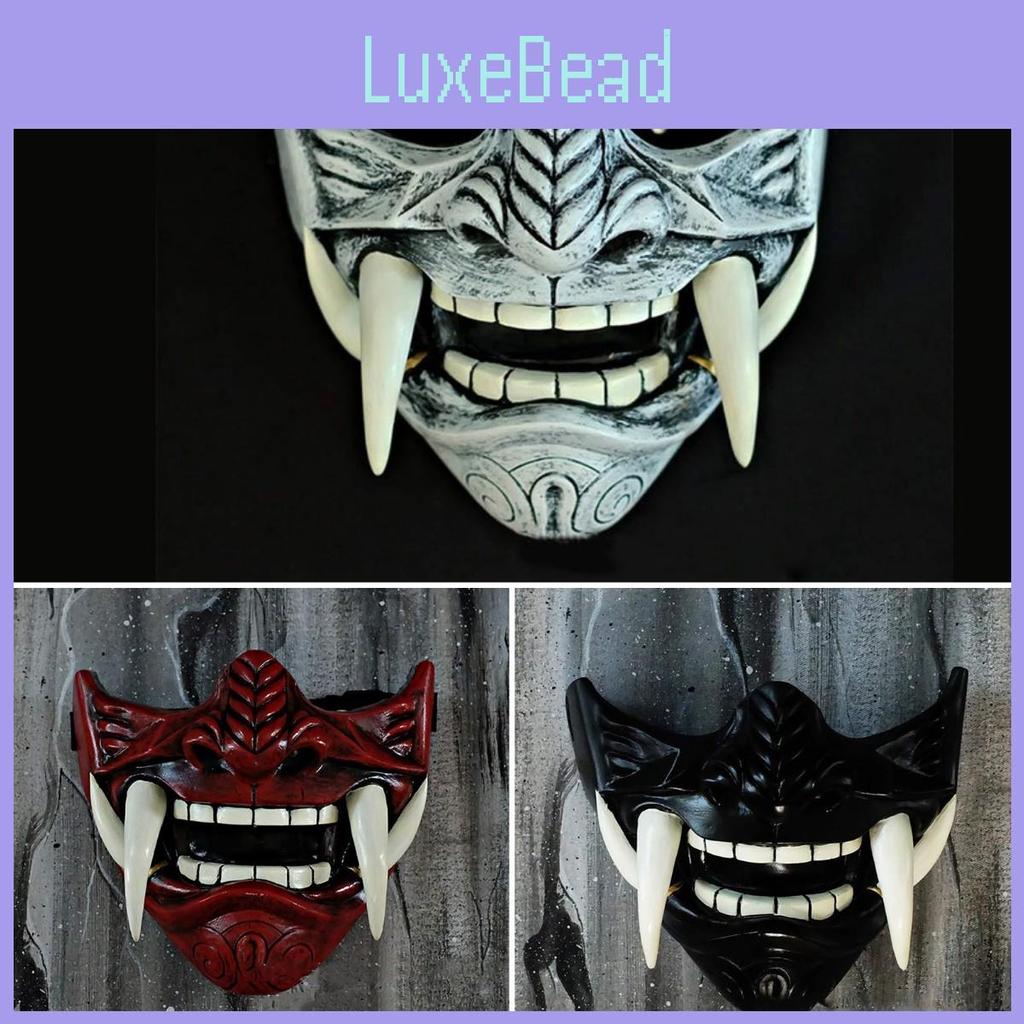 Djävulskrigare Hannya Halvansikte Latexmask Halloween Kostymrekvisita Skräckinjagande Cosplayrekvisita