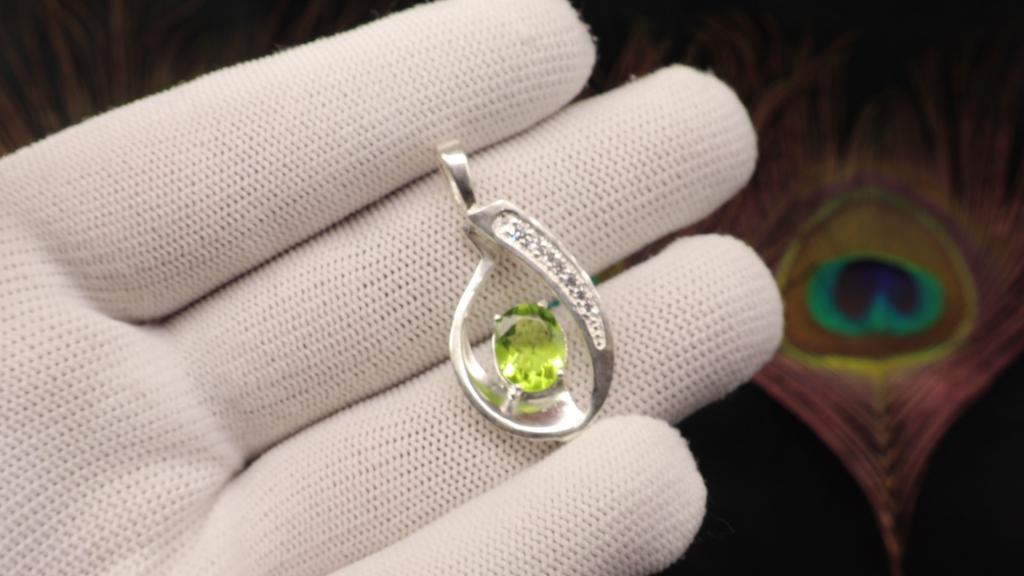 Peridot Gemstone 925 Sterling Silver Jewelry Pretty Zircon Pendant 1.4" Thanksgiving Gift For Her CZP-16-3