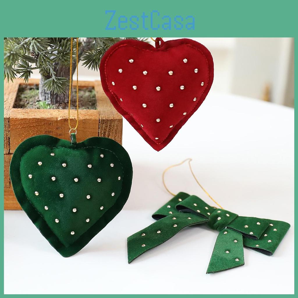 Dessa julgransprydnader i tyg har hjärtformade designer tillverkade av slitstarkt tygmaterial.. Varje julgransprydnad mäter cirka 8,5*8*2,5 cm respektive 11*9,5*2 cm i höjd och inkluderar dubbla rosetter i mörkgrönt och vinrött, vilket ger festlig charm.. Perfekt för att förhöja juldekorationen med en touch av elegans. Dessa hängande dekorationer är designade för julfiranden och är idealiska för att dekorera träd, spiselkransar eller kransar.. För att bibehålla deras utseende, torka försiktigt rena med en fuktig trasa.