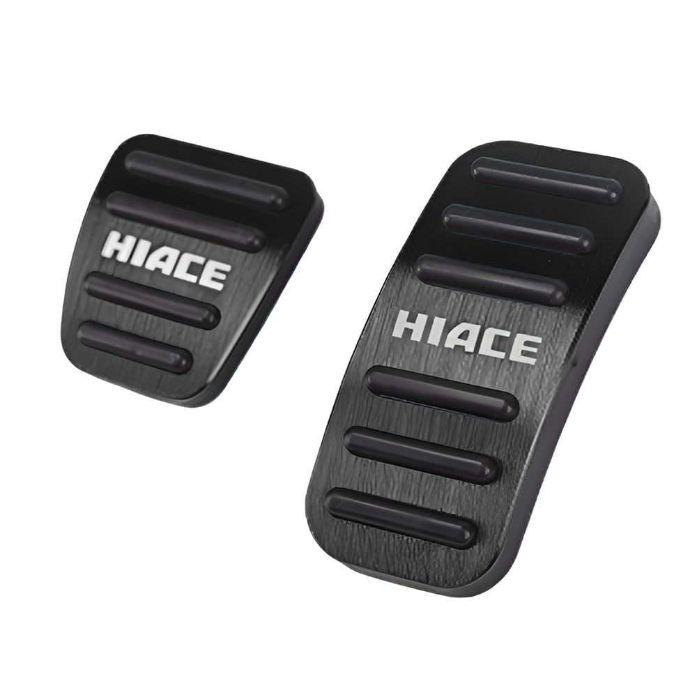 Completely Vehicle-Specific Design Toyota Hiace 200 Series Compatible Aluminum Alloy Pedal Covers (Set of 2) POINT.1 "Exclusive Design" - Hiace-specific product based on actual vehicle fitting Enjoy a fit that feels just like an original part Perfect fit, supporting your driving POINT.2 "Safety & Security" - Made of high-quality aluminum alloy Lightweight and sturdy body with 3D rubber applied to the pedal surface Increases the friction coefficient between shoe and pedal for improved grip This pedal cover is designed for safety and is effective even when driving in the rain POINT.3 "Easy Installation" - No drilling or tools required, just snap it into place Can be installed the day it arrives (Installation procedure) 1. Remove the original rubber cover attached to the pedal 2. Snap this product onto the pedal from which the cover was removed 3. Check for any rattle or looseness 4. If it fits snugly, installation is complete. POINT 4 "Long-lasting quality" - Made of special aluminum alloy - Lightweight, sturdy, and highly durable, with a good look and feel - A high-quality pedal cover that can be used for a long time. POINT 5 "Do