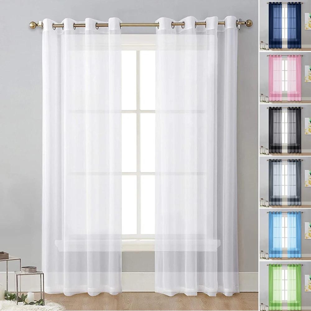 Modern White/Black/Grey Sheer Curtains for Living Room Solid Transparent Yarn Tulle Curtain for Window Kitchen Simple Home Decor