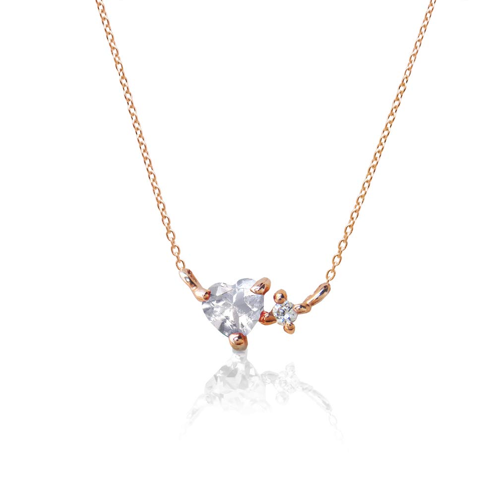 Miwa Houseki Small and cute necklace featuring a June birthstone in K10 pink gold with diamonds and a delicate curb chain [miwahouseki] heart-shaped