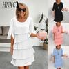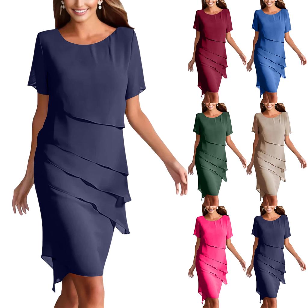 Dam Sommarklänning Smal Passform Klänning Färg Chiffong Rund Hals Kortärmad Klänning