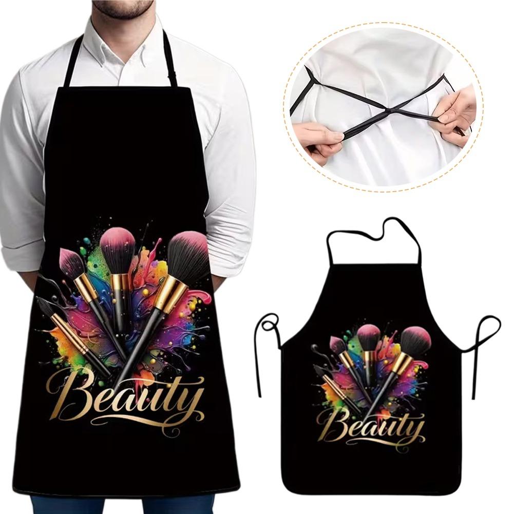 Makeup Brush Pattern Apron Polyester Fabric Stain Resistant Water Oil Proof For Professional Beautician Home Kitchen Accessory
