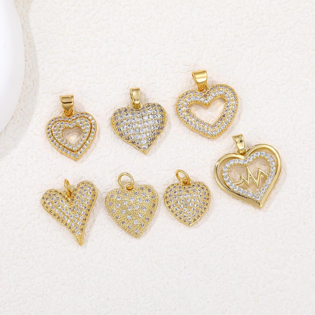 Copper-Plated 18K Gold Diamond Heart Pendant for DIY Bracelets and Necklaces