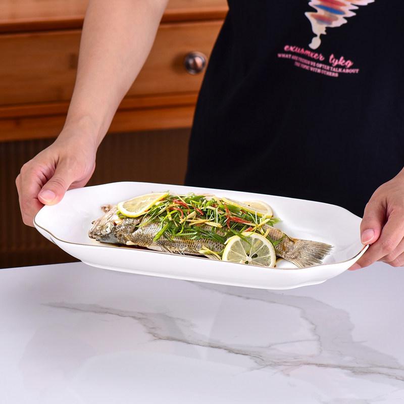Gold-Rimmed Nordic Fish-Shaped Ceramic Plate for Steamed Fish - Large Household Dish