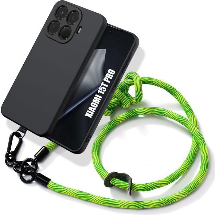 Fodral för Xiaomi 15T Pro - Svart flytande silikonskydd med robust grön snodd