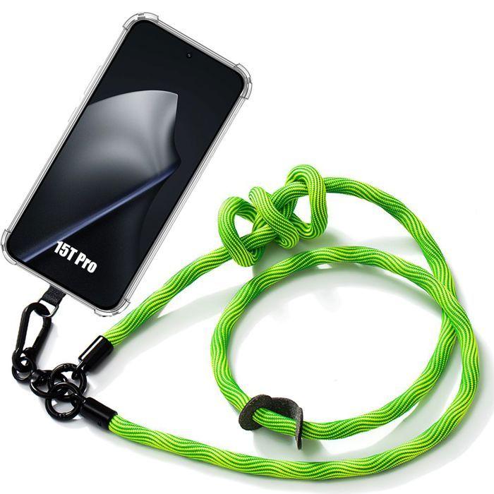 Fodral för Xiaomi 15T Pro, Genomskinligt Stötsäkert Skydd med Avtagbar Grön Lanyard