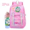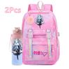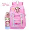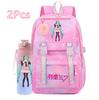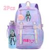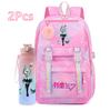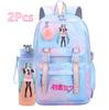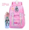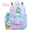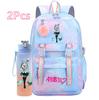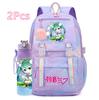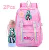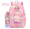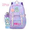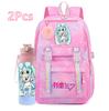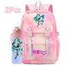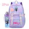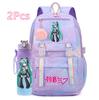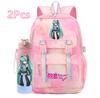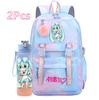 2 st/set Söt Hatsune Miku-tryckt Ryggsäck med 750 ml Vattenflaska för Tonårsflicka Pojke Skolväska Stor Kapacitet Vattentät Resväska Gåva