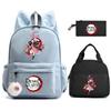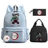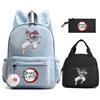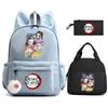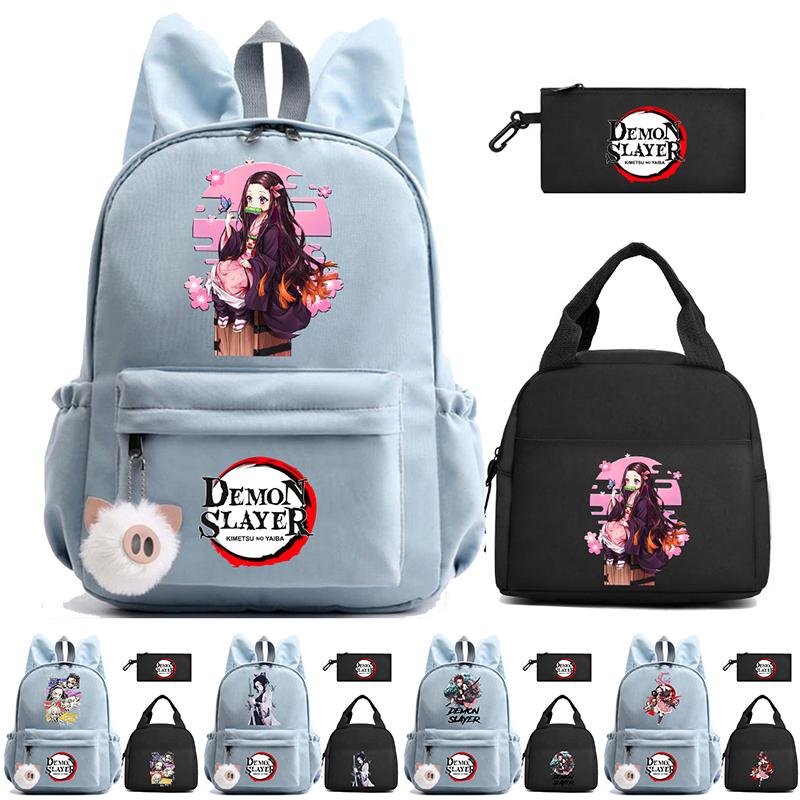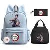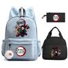 3 st/set Anime Demon Slayer Tryckt Ryggsäck Matlåda Pennfodral för Barn Elev Skolväska Dam Stor Kapacitet Vattentät Resväska Gåva