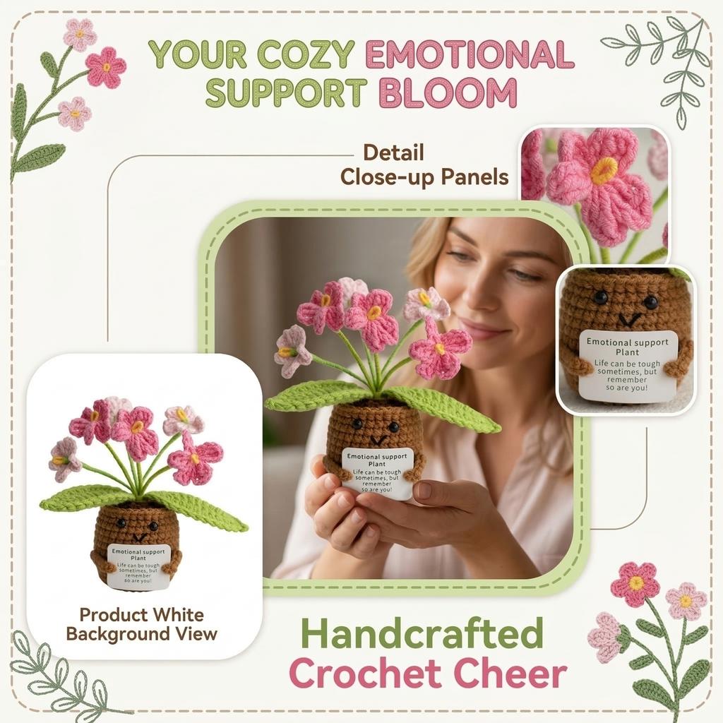 Stickade Blommor, Krukväxter, Färdiga Produkter, Garn, Konstgjorda Blommor, Skrivbordsdekorationer, Handhållna Kortdockor