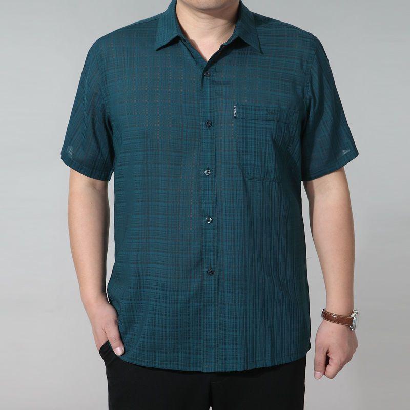 Herrskjorta med kort ärm, rutig i turkos, med ficka