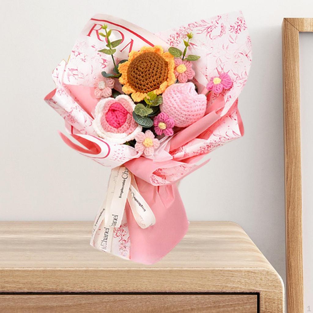 - 【Komplett virkad blomsterbukett】: Denna vackra konstgjorda bukett av stickade blommor är livfull och elegant. Det är bra för tillfällen som Mors dag, Alla hjärtans dag och mer