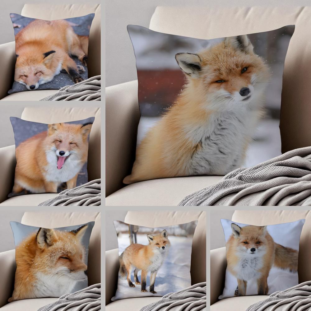 funny foxy photograph Cushion Cover Throw Pillow Cover Hidden Button Durable Polyester Chair Cushion