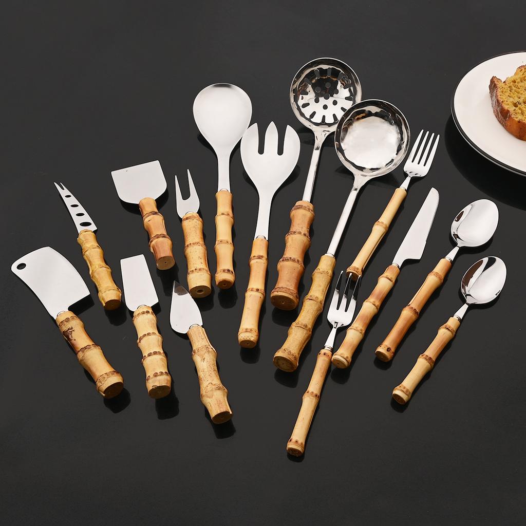 4/5/7-piece Cheese Knife Set Stainless Steel Silverware Set Bamboo Handle Utensils Hostess Serving Set for Buffet Home