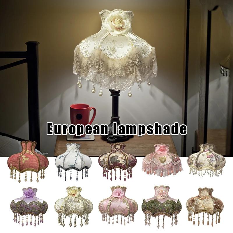European Style Lampshade Luxury Retro Beaded Lace Flower Bedroom Bedside Lamp Floor Lamp Wall Lamp Dust Cover Home Decoration