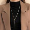 Long Winter-spring Style Adjustable Pearl Ball Sweater Necklace with Delicate Snake Bone Chain