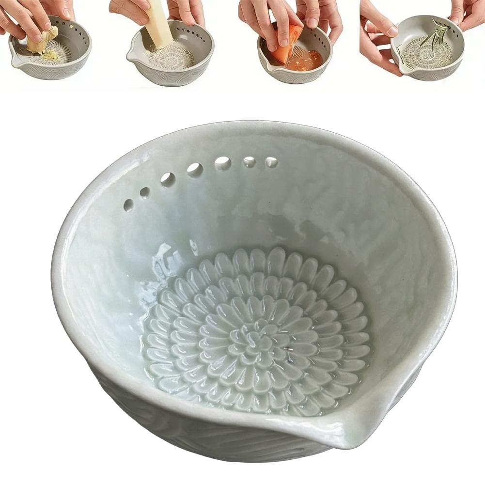Handmade Garlic Grater Herb Bowl - 2-in-1 Multi-Functional Kitchen Tool Ceramic Bowl With Built-in Grater For Fresh Herbs Lemon