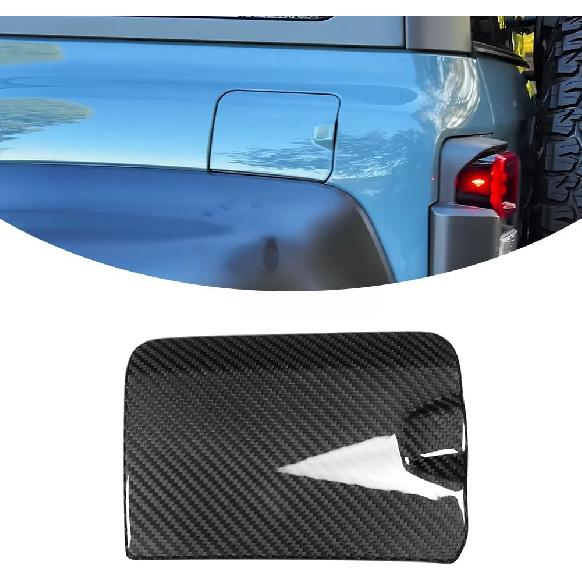 Jogon Real Carbon Fiber Fuel Door Gas Tank Trim Cover for Ford Bronco Raptor 2021 2022 2023 2024 2025, Exterior Body Side Fuel Tank Cap (Glossy CF)