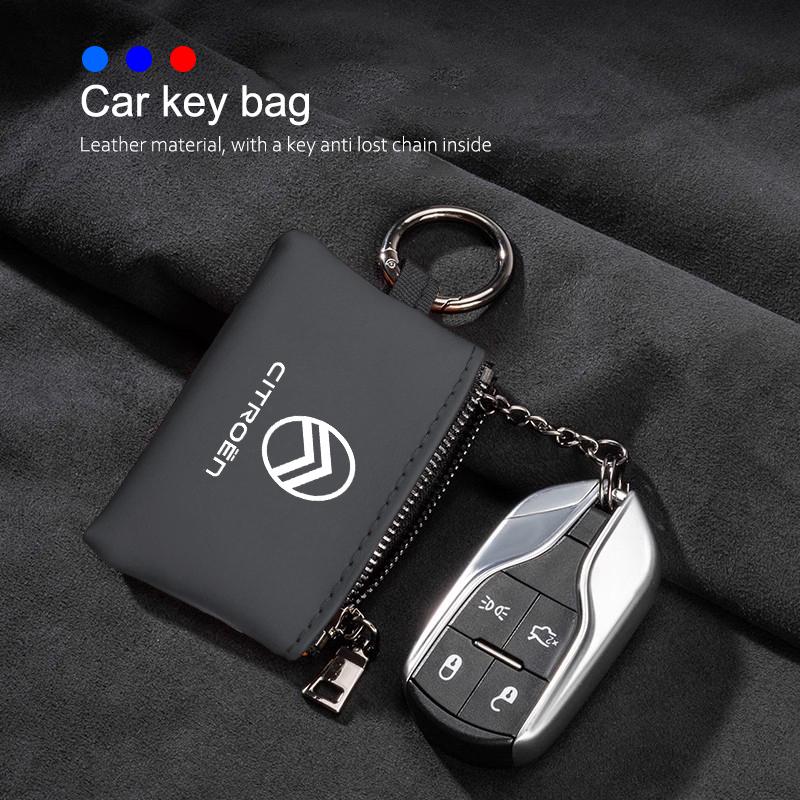 Bil Läder Nyckelfodral Nyckelring Mini Förvaringsväska Bilaccessoarer För Citroen Celysee C6 C3 C5 C1 C2 C4 Aircross Picasso Cactus