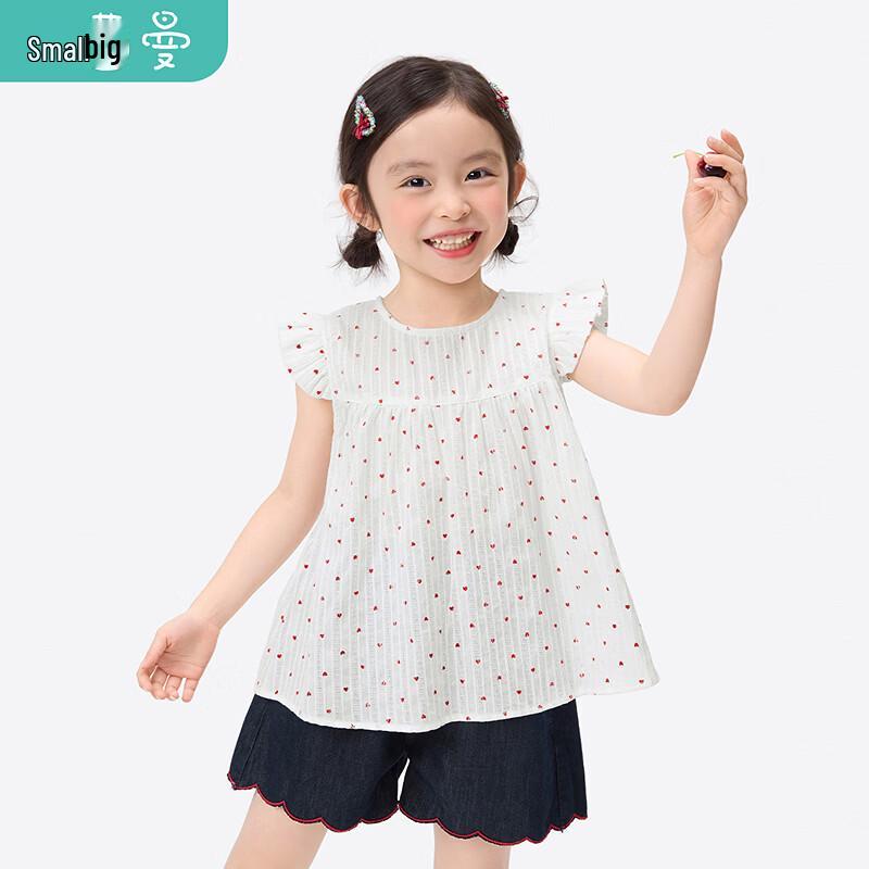 Girls' Ruffled Sleeve Heart Print Doll Shirt