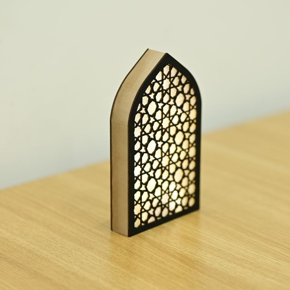 Creative Eid Desktop Ornament LED House-shaped Design Crafts Night Light Ornament Small Portable Eid Wooden Decoration