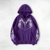 Avant-garde dark aesthetic skeleton-print hoodie, zip-up hoodie