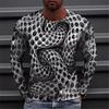 Trendig herr-t-shirt med tryck Optisk illusion Rund hals Långärmad Street Harajuku Överdrivet designer-topp med rund hals
