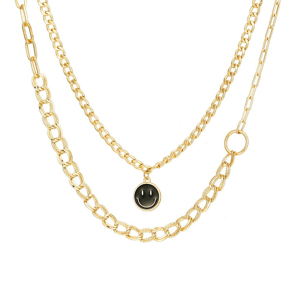 Trendsetting Gold Layered Necklace For Women Creative Smiley Face Chain Design
