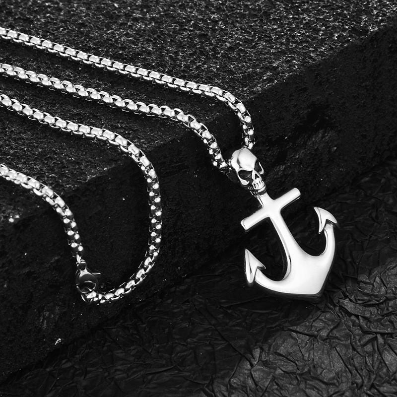 Snygg Vintage Punk Skalle Ankare Titanstål Halsband För Män Och Kvinnor Med Unik Piratskeppsdesign