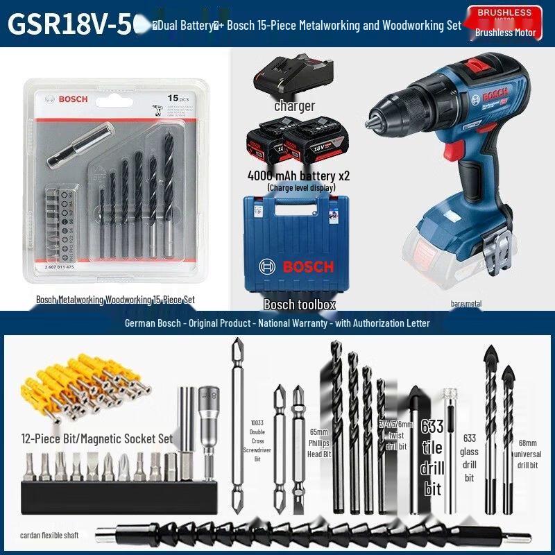 Bosch 18V Cordless Brushless Impact Drill GSB18V-50 CN plug (adapter included)