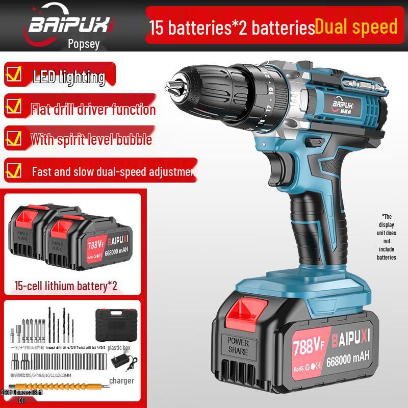 BAIPUXI Cordless Lithium-ion Drill Screwdriver CN plug (adapter included)