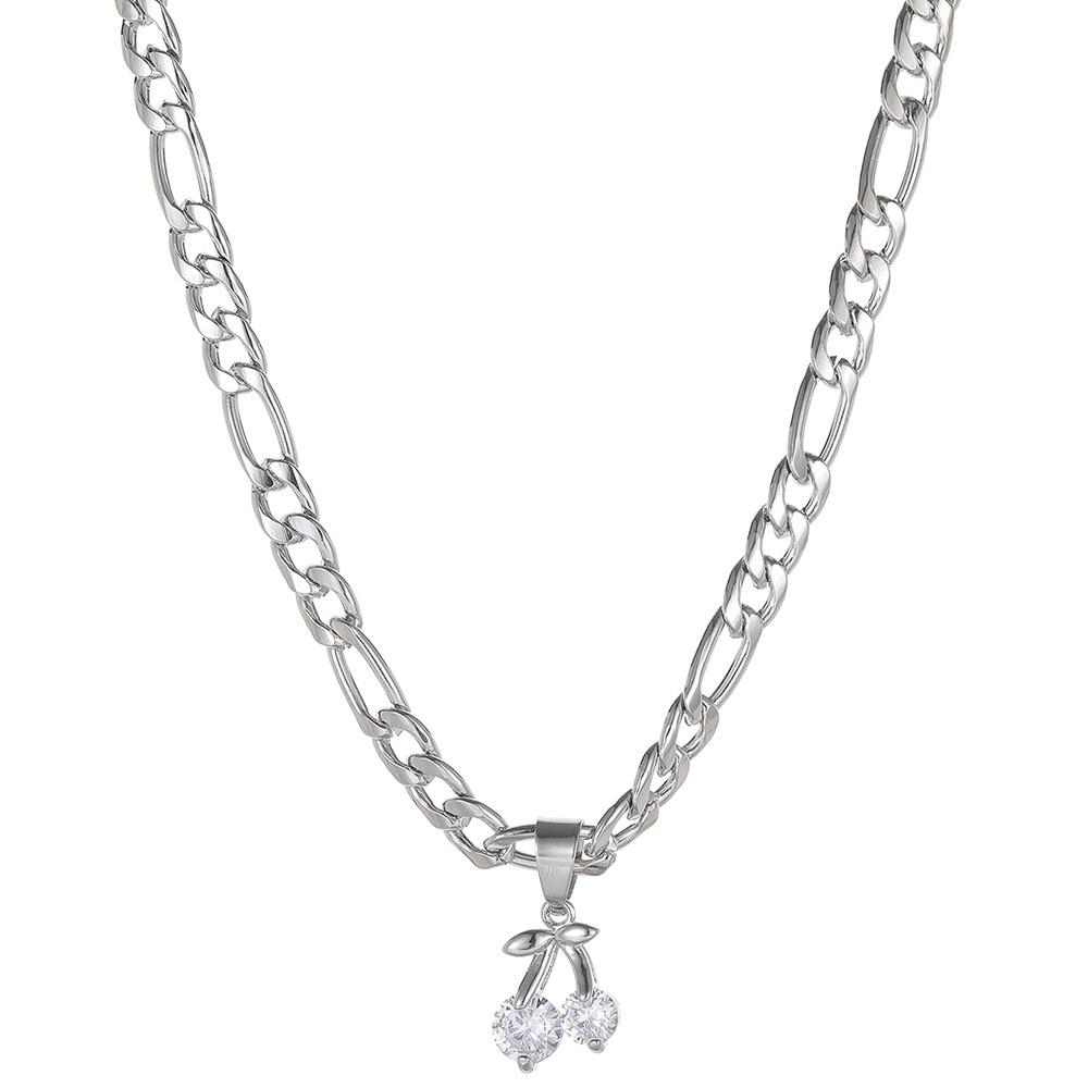 The pendant is intricately plated to ensure a bright silver finish that glistens in the light, adding a touch of luxury to your jewelry collection. Suspended from a classic chain, this piece offers a comfortable fit while exuding a chic, fashionable vibe. With its non-layered design, the cherry pendant stands out as a singular statement piece, allowing you to pair it effortlessly with other accessories or wear it alone for an understated yet stylish look.