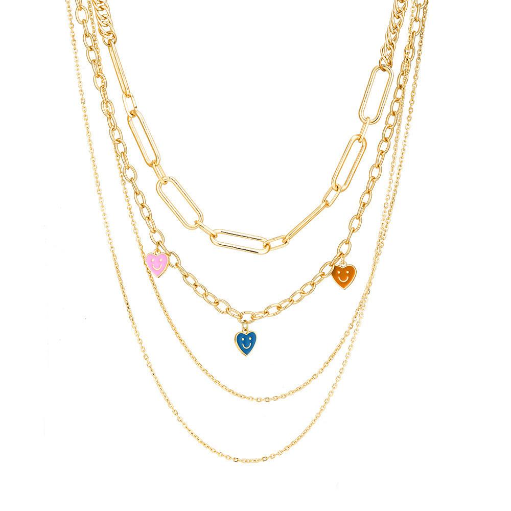 Elevate your accessory game with the Modern Geometric Heart Pendant Necklace, a stunning piece designed for the contemporary woman who loves to express herself through fashion. Crafted from high-quality alloy and finished with a luxurious gold plating, this necklace is not only elegant but also durable, ensuring that it will remain a staple in your jewelry collection for years to come. The eye-catching geometric heart pendant, adorned with a playful smiley face design, adds a charming twist that sets it apart from conventional jewelry, making it a perfect choice for both casual and chic occasions.