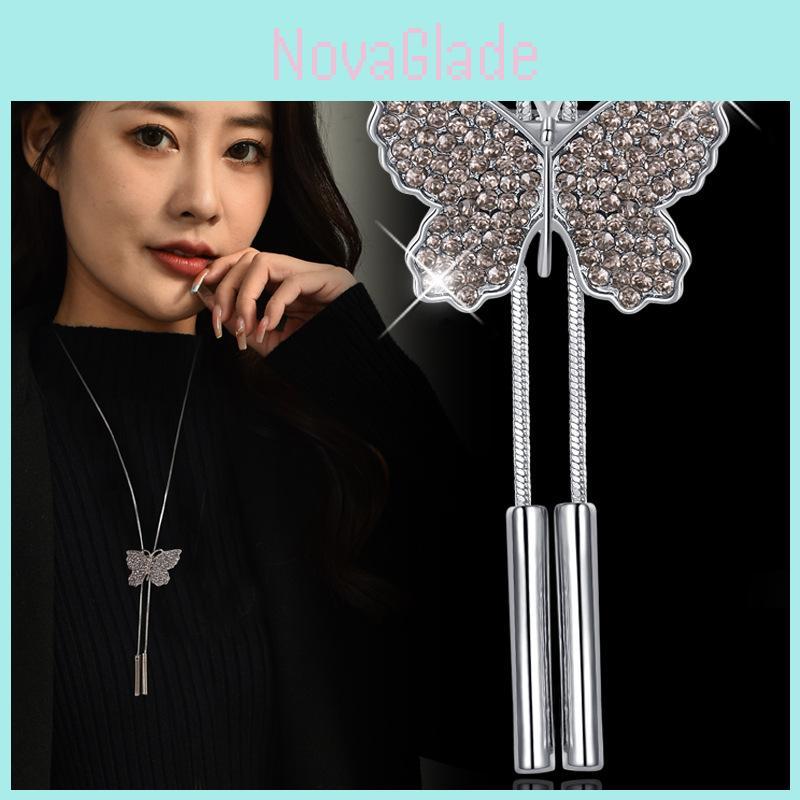 Stylish Design: The unique butterfly shape and shimmering rhinestone embellishments make this necklace an eye-catching accessory, perfect for any outfit.