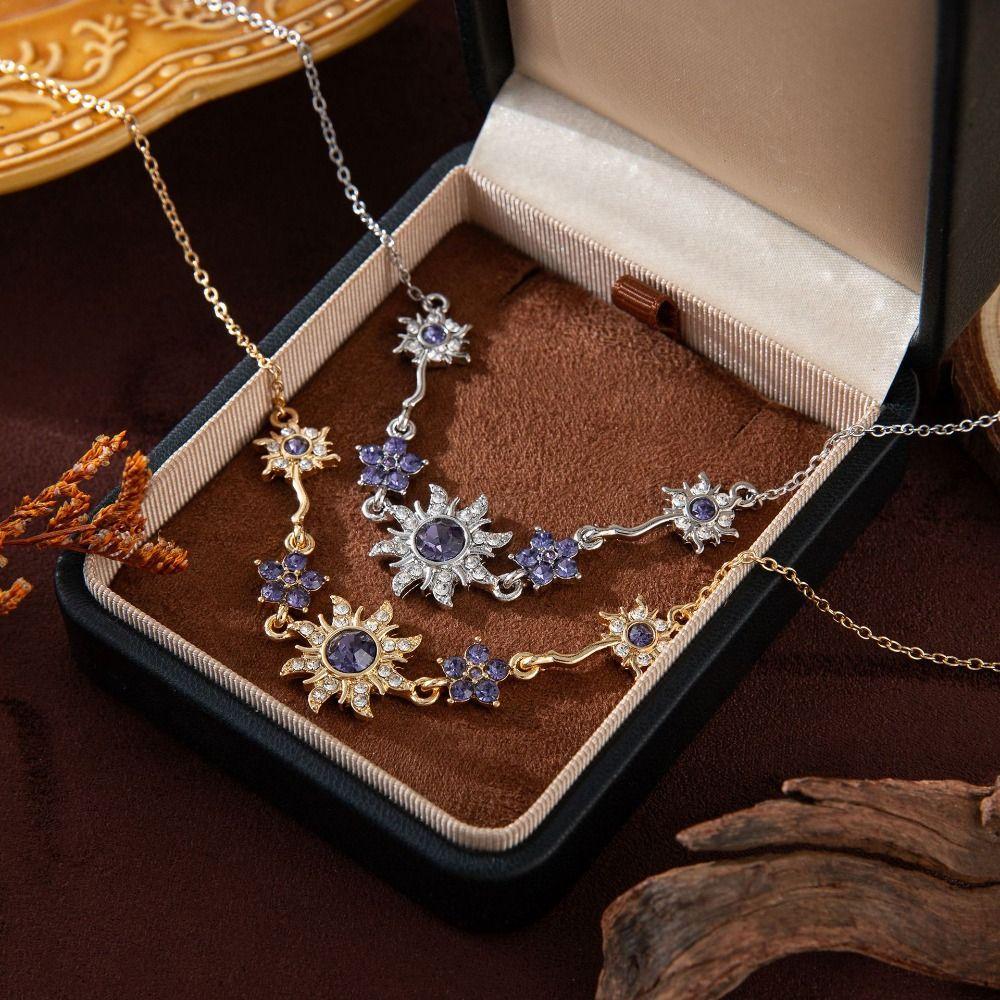 Zinc Zinc Zinc Alloy Sun Flower Chain Neck Jewelry Rhinestone Necklace Women Retro Star Necklace Gifts