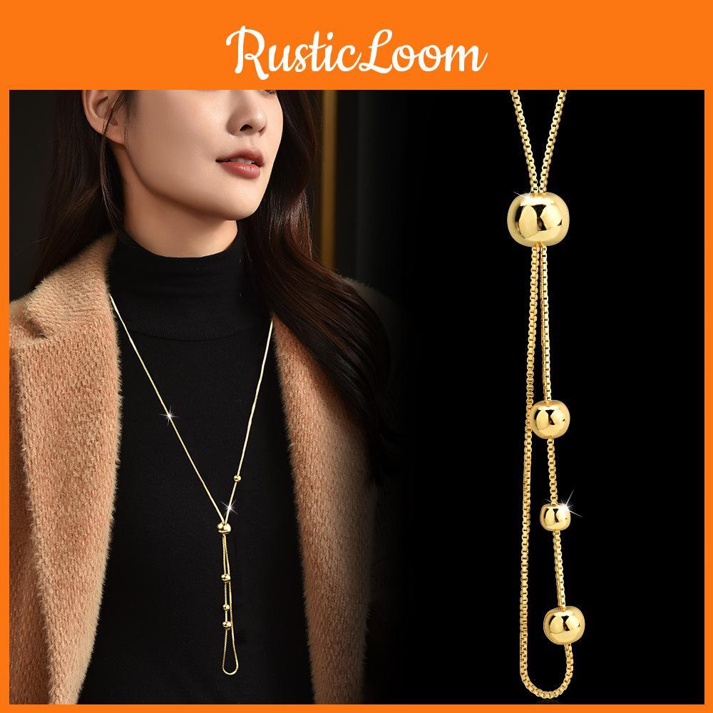 Trendy Geometric Design: Featuring a unique geometric pull-through ball design, this necklace is a fashionable statement piece for the modern woman.