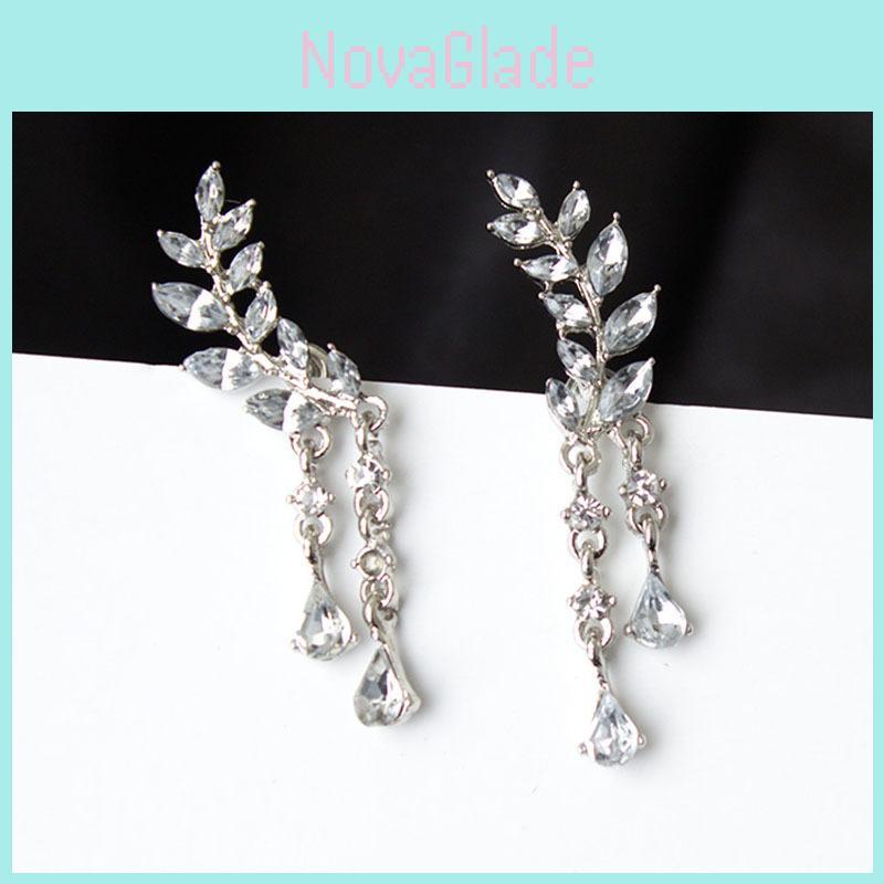 Eleganta Dammörhängen med Kristall Zirkon Blad och Tofsar För En Tidlös Look