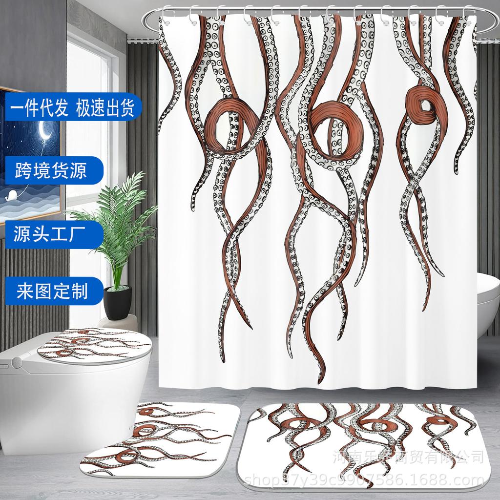 Duschdraperiset med bläckfiskfotsmönster och halkfri, vattenabsorberande badmatta