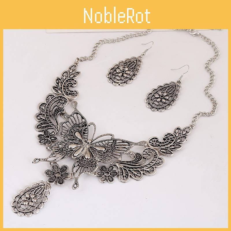Fashion Hollowed Out Butterfly And Flower Design Women Necklace Earring Set For Women And Men