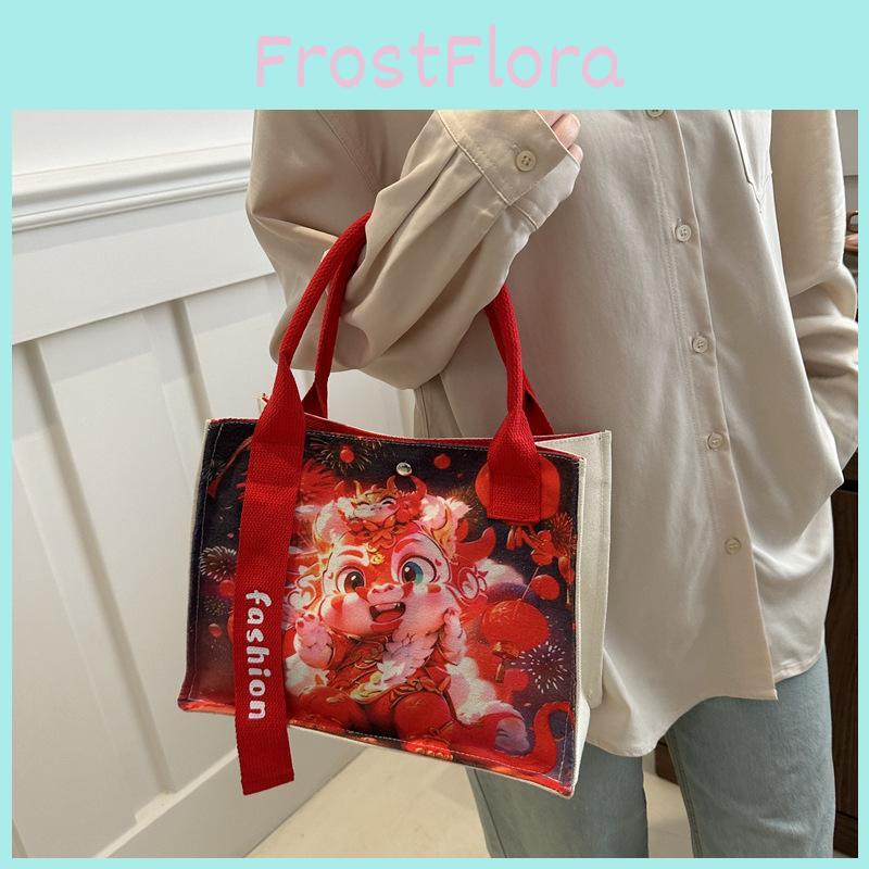 2024 Dragon Year Gift Bag Canvas Bag Commuter Tote Bag National Style Large Capacity Casual Tote Bag Underarm Bag