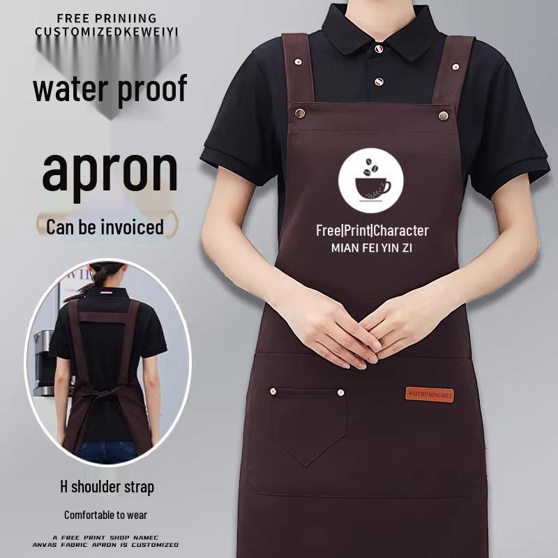 High-End Waterproof Apron: Logo Printing, Youthful Style for Milk Tea & Coffee Kitchens