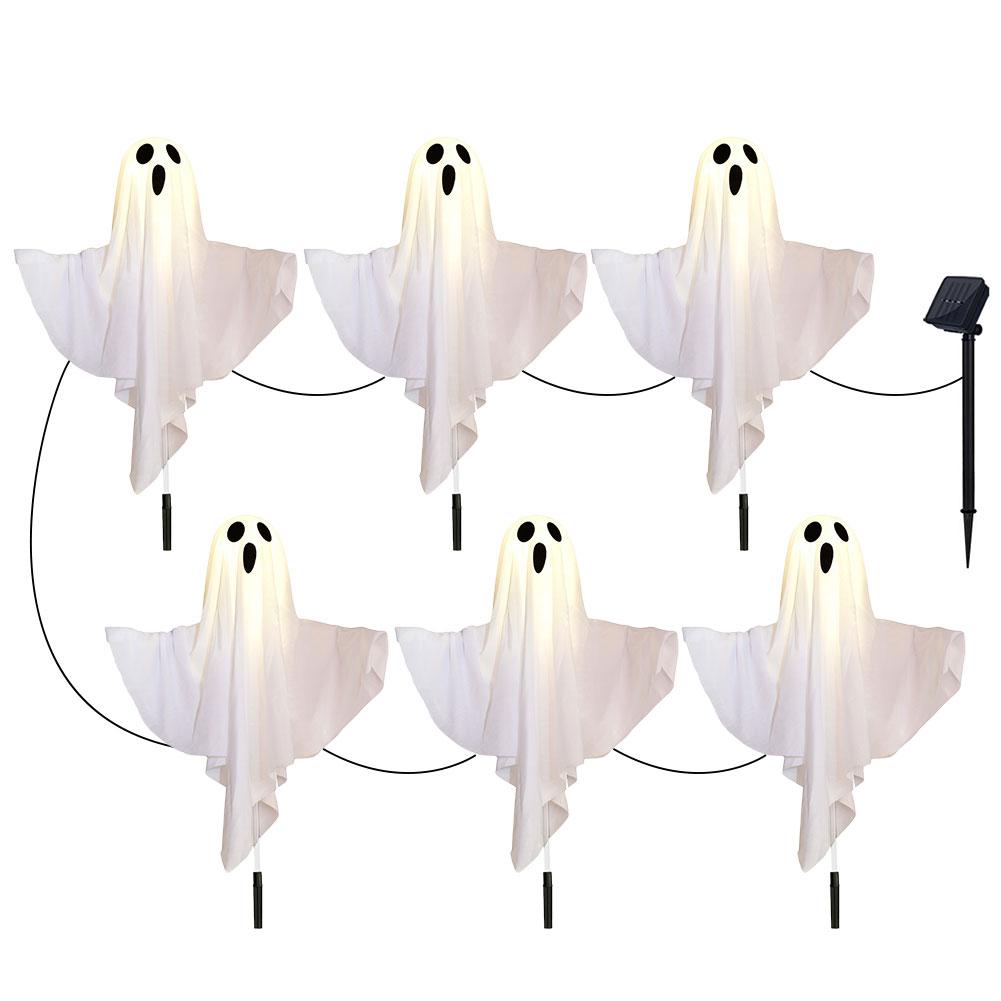 Halloween Ghost Decoration Lantern Solar Powered Spooky Cloth Ghosts Light White Flying Ghosts Lantern for Party Yard Lawn Decor