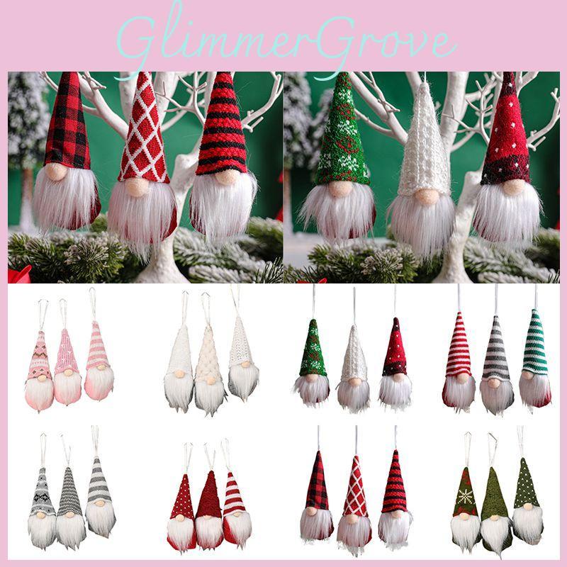 Charming Collection Of 3 Christmas Tree Hanging Gnome Plush Gonk Santa Doll Pendants For Delightful Holiday Atmosphere